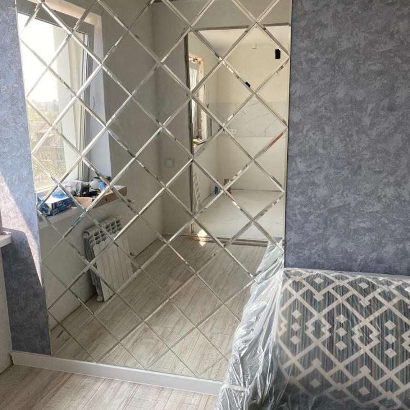 Использована серебряная зеркальная плитка «вытянутый ромб».