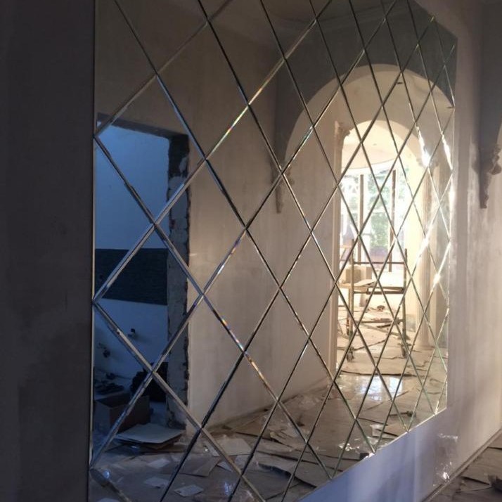 Использована зеркальная плитка "вытянутый ромб" с фацетом.